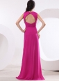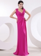 Home >  Prom Dresses >  Elegant Prom Dresses > Fuchsia and V-neck For High Slit Prom Dress With Ruch and Brush Train