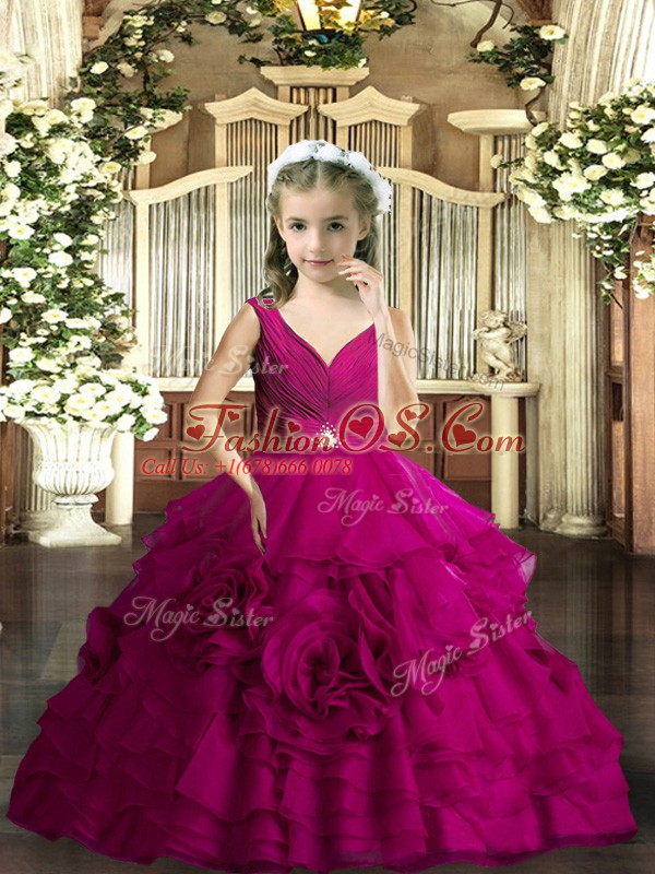 Home >  Special Occasion Dresses >  Lovely Little Girl Pageant Dresses > Fuchsia Backless Kids Pageant Dress Beading Sleeveless Floor Length