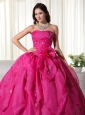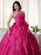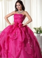 Fuchsia Ball Gown Strapless Floor-length Organza Appliques Quinceanera Dress