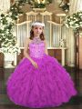 Fuchsia Ball Gowns Beading and Ruffles Child Pageant Dress Lace Up Tulle Sleeveless Floor Length