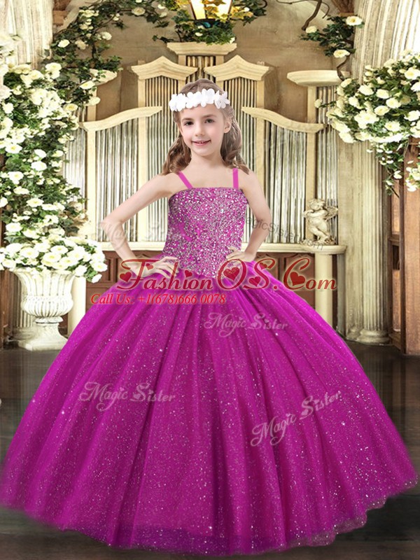 Home >  Special Occasion Dresses >  Beautiful Kids Pageant Dresses > Fuchsia Ball Gowns Beading Pageant Dress for Teens Lace Up Tulle Sleeveless Floor Length