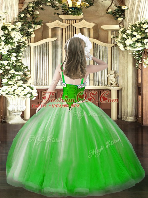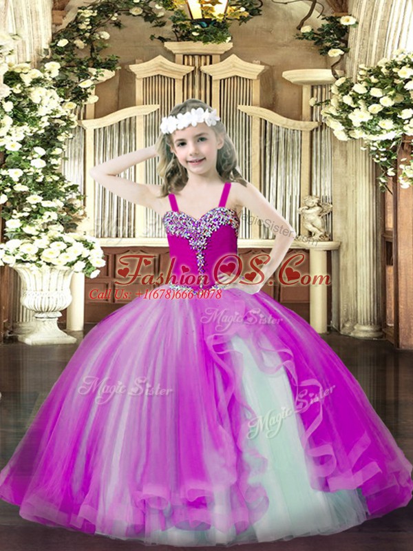 Home >  Special Occasion Dresses >  Lovely Little Girl Pageant Dresses > Fuchsia Ball Gowns Straps Sleeveless Tulle Floor Length Lace Up Beading Pageant Gowns For Girls