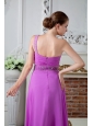 Home >  Prom Dresses >  Beautiful Prom Dresses > Fuchsia Column One Shoulder Prom Dress Chiffon Ruch and Beading Floor-length