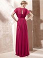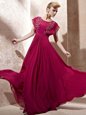 Fuchsia Column/Sheath Scoop Cap Sleeves Chiffon Floor Length Zipper Beading Prom Gown