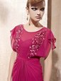 Home >  Prom Dresses >  Cheap Prom Dresses > Fuchsia Column/Sheath Scoop Cap Sleeves Chiffon Floor Length Zipper Beading Prom Gown