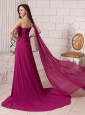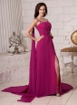 Fuchsia Empire Beaded Decorate Shoulder One Shoulder Watteau Train Prom Gowns For Custom Made In Innerleithen UK