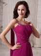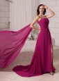 Fuchsia Empire Beaded Decorate Shoulder One Shoulder Watteau Train Prom Gowns For Custom Made