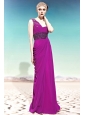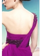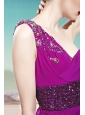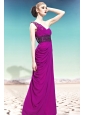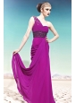 Fuchsia Empire One Shoulder Floor-length Chiffon Beading Prom Dress