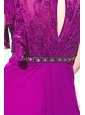 A pretty elegant eveling dress features a sleeve lace bodice and round neckline,the lace do really achieve a sexy look. The narrow beaded band add the exquisite look. The skirt is made of many layers of chiffon fabric that fall straight to the floor in clean lines, enveloping your legs. It moves beautifully when you walk and would be perfect for any formal or black tie event.