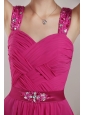 Fuchsia Empire Straps Floor-length Chiffon Beading Prom / Pageant Dress