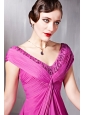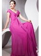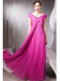 Fuchsia Empire V-neck Floor-length Chiffon Beading Prom Dress