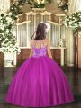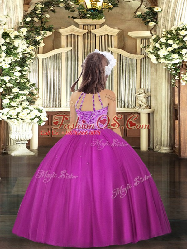 Fuchsia Halter Top Lace Up Beading Little Girl Pageant Gowns Sleeveless