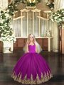 Fuchsia Halter Top Lace Up Embroidery Sweet 16 Quinceanera Dress Sleeveless