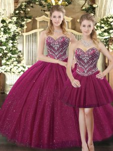 Fuchsia Lace Up Sweet 16 Dresses Beading Sleeveless Floor Length