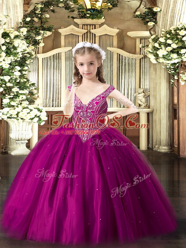 Home >  Special Occasion Dresses >  Beautiful Kids Pageant Dresses > Fuchsia Lace Up V-neck Beading Custom Made Pageant Dress Tulle Sleeveless