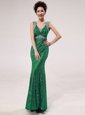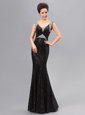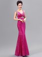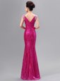 Fuchsia Mermaid V-neck Sleeveless Sequined Floor Length Zipper Sequins Dress for Prom
