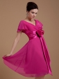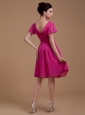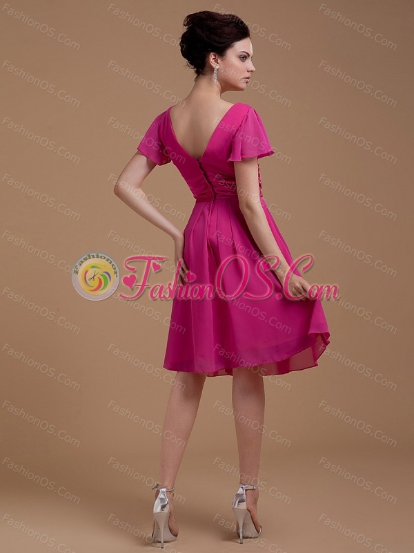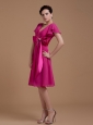 Fuchsia Mother Of The Bride Dress With Bowknot Short Sleeves Knee-length Chiffon
