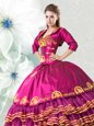 Fuchsia Organza and Taffeta Lace Up Sweetheart Sleeveless Floor Length Sweet 16 Dresses Embroidery and Ruffled Layers