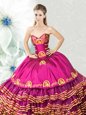 Home >  Quinceanera Dresses >  Pretty Quinceanera Dresses > Fuchsia Organza and Taffeta Lace Up Sweetheart Sleeveless Floor Length Sweet 16 Dresses Embroidery and Ruffled Layers