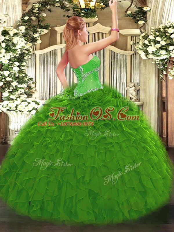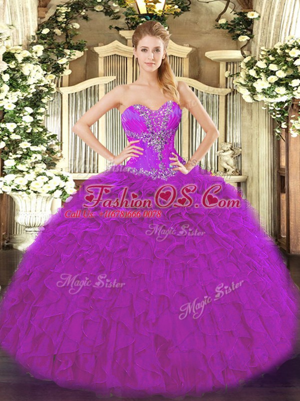 Home >  Quinceanera Dresses >  Fast Delivery Quinceanera Dresses > Fuchsia Organza Lace Up Quinceanera Gowns Sleeveless Floor Length Beading and Ruffles