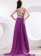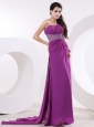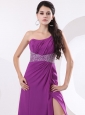 Home >  Prom Dresses >  Elegant Prom Dresses > Fuchsia Prom / Evening Dress With One Shoulder Beaded and High Slit Watteau Train
