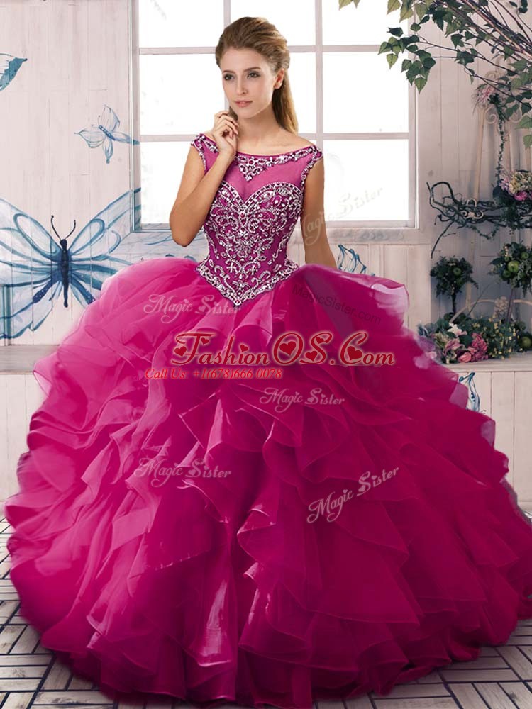 Fuchsia Scoop Zipper Beading and Ruffles Sweet 16 Dresses Sleeveless