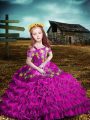 Fuchsia Short Sleeves Embroidery and Ruffled Layers Floor Length Little Girls Pageant Gowns