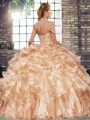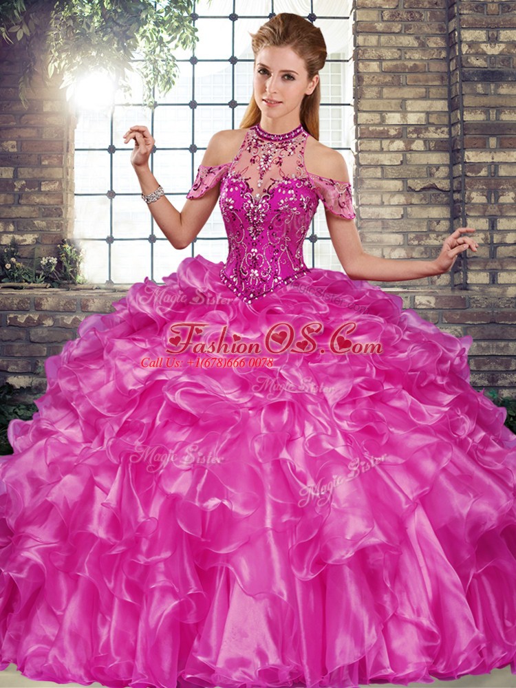Fuchsia Sleeveless Beading and Ruffles Floor Length Ball Gown Prom Dress