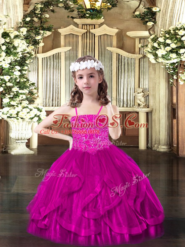 Home >  Special Occasion Dresses >  Pretty Little Girl Pageant Dresses > Fuchsia Sleeveless Beading and Ruffles Floor Length Kids Pageant Dress