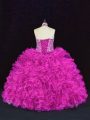 Fuchsia Sleeveless Beading and Ruffles Floor Length Quinceanera Dress