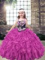 Fuchsia Sleeveless Embroidery and Ruffled Layers Floor Length Little Girl Pageant Gowns
