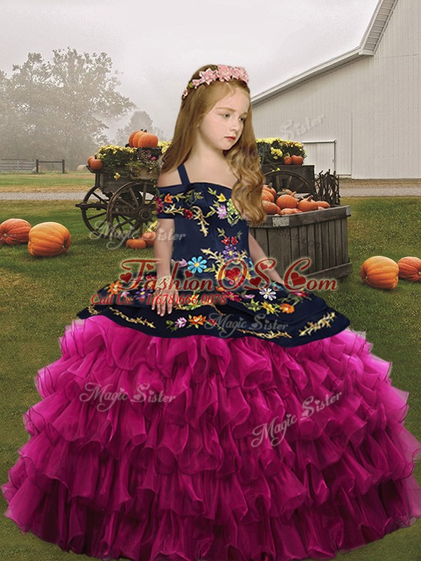 Home >  Special Occasion Dresses >  2018 Little Girl Pageant Dresses > Fuchsia Sleeveless Embroidery and Ruffles Floor Length Child Pageant Dress