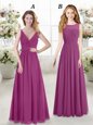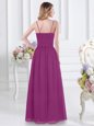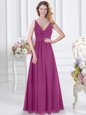 Fuchsia Sleeveless Ruching Floor Length Vestidos de Damas