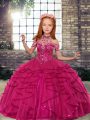 Fuchsia Sleeveless Tulle Lace Up Little Girl Pageant Dress for Party and Wedding Party