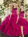 Fuchsia Sleeveless Tulle Lace Up Quinceanera Dress for Military Ball and Sweet 16 and Quinceanera