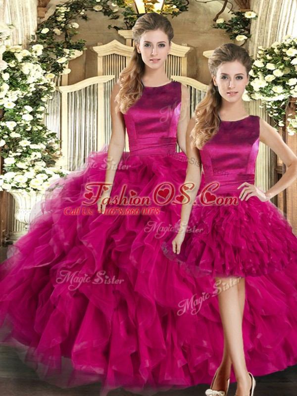 Home >  Quinceanera Dresses >  Detachable Quinceanera Skirts > Fuchsia Sleeveless Tulle Lace Up Quinceanera Dress for Military Ball and Sweet 16 and Quinceanera