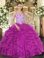 Fuchsia Sleeveless Tulle Lace Up Quinceanera Gowns for Sweet 16 and Quinceanera