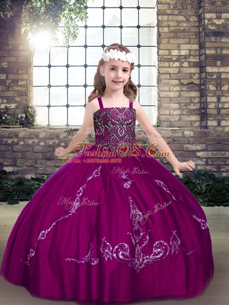 Fuchsia Straps Lace Up Beading Little Girl Pageant Gowns Sleeveless