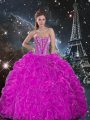 Fuchsia Sweetheart Neckline Beading and Ruffles Quince Ball Gowns Sleeveless Lace Up