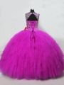 Fuchsia Tulle Lace Up Straps Sleeveless Floor Length 15 Quinceanera Dress Beading and Ruffles