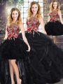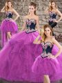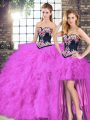 Home >  Quinceanera Dresses >  Removable Skirt Quinceanera Dresses > Fuchsia Tulle Lace Up Sweetheart Sleeveless Floor Length Vestidos de Quinceanera Beading and Embroidery
