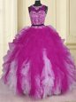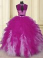 Fuchsia Two Pieces Scoop Sleeveless Tulle Floor Length Zipper Beading and Ruffles Sweet 16 Dress