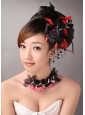 Fully Handmade Romantic Headpiece Red and Black With Feather For Party