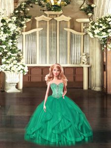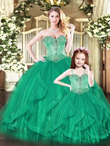 Glamorous Aqua Blue Ball Gowns Sweetheart Sleeveless Tulle Floor Length Lace Up Beading and Ruffles Quinceanera Gown