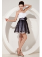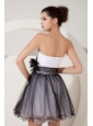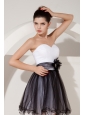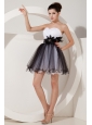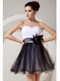 Glamorous Black and White Short Prom Dress A-line / Princess Sweetheart Mini-length Tulle Hand Made Flowers