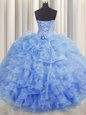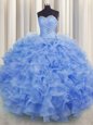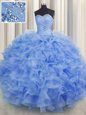Glamorous Blue Ball Gowns Sweetheart Sleeveless Organza Floor Length Lace Up Beading and Ruffles Vestidos de Quinceanera