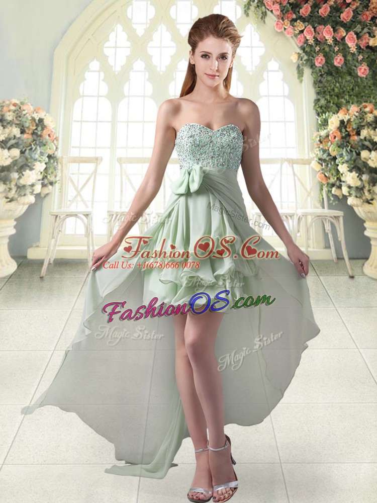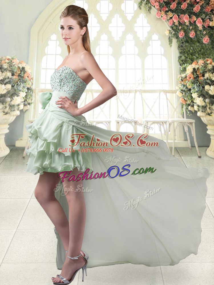 Glamorous Chiffon Sweetheart Sleeveless Zipper Beading and Ruffled Layers Prom Party Dress in Apple Green