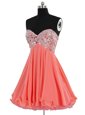 Glamorous Mini Length Watermelon Red Prom Evening Gown Sweetheart Sleeveless Lace Up