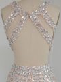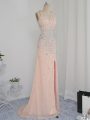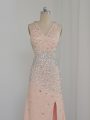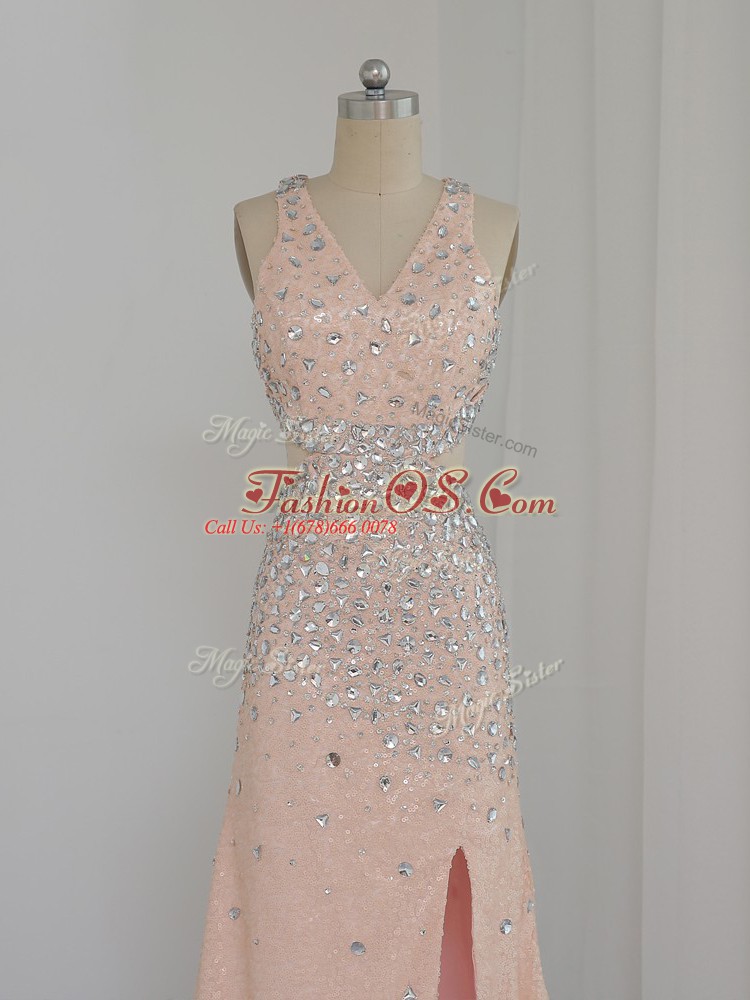 Glamorous Peach Column/Sheath Beading Prom Dresses Backless Chiffon Sleeveless Floor Length