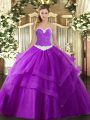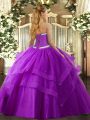 Glamorous Purple Sweetheart Neckline Appliques and Ruffled Layers Quinceanera Gowns Sleeveless Lace Up